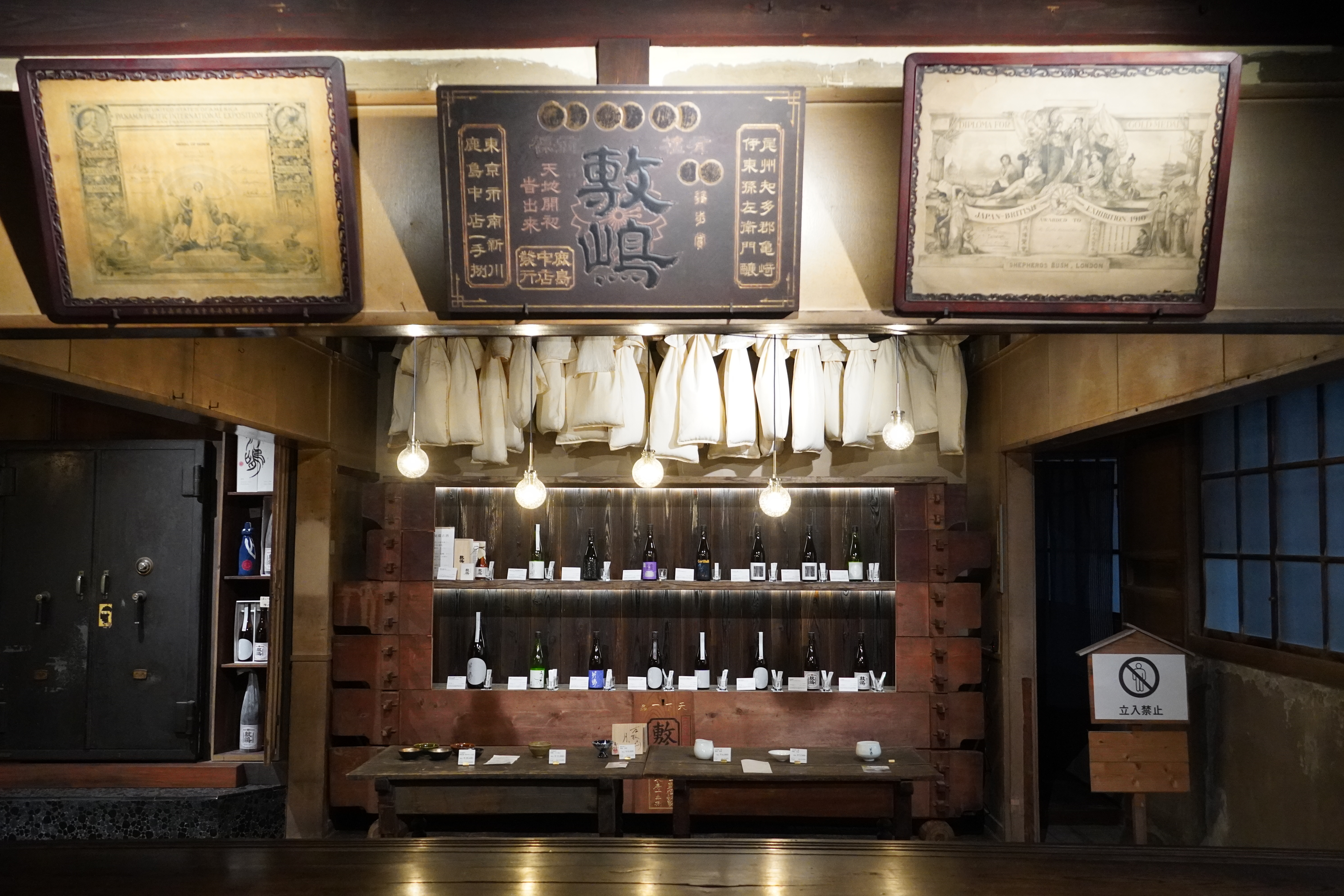 「蔵の店 かめくち」は、日本酒「敷嶋」直営の販売所です。かつて銀行であったこの場に残る、重厚な金庫。その扉をいま、未来へ向けて開け放ちます。